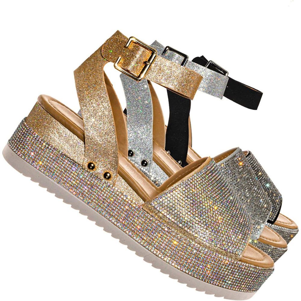 Aquapillar Rhinestone Glitter Platform Sandals are perfect for special occasions when you need to look your best. Not only do they provide you with the lift you need to stand taller, but they are also incredibly comfy.